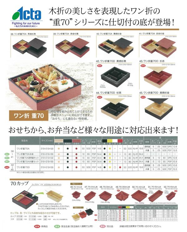 木折の美しさを表現したワン折”重70″シリーズに仕切付の底が登場!