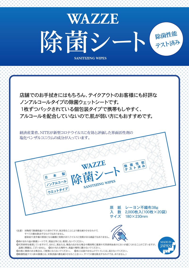 ホテル、飲食店、惣菜店の ウイルス対策に!